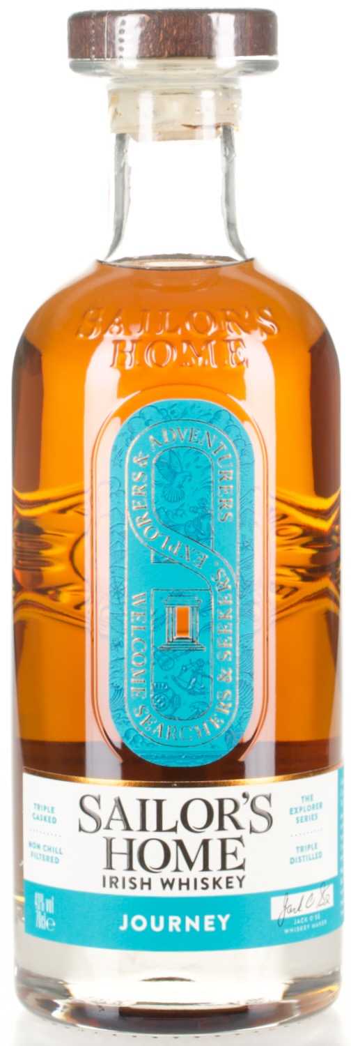 Der Sailor's Home The Journey ist ein dreifach destillierter Blended Irish Whiskey, der in einem einzigartigen Verfahren hergestellt wird. Zuerst altert irischer Whiskey in Virgin American Oak-Fässern und wird danach in American Bourbon-Fässer umgefüllt. Darauf folgt die Vermählung mit irischem Whiskey aus American Bourbon-Fässern, der sein Finish in jamaikanischen Rumfässern erhält.