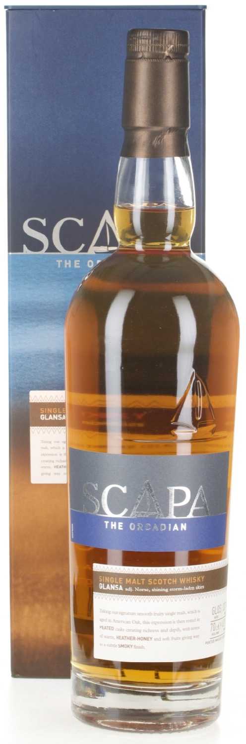 Der Scapa Glansa reifte ausschließlich in amerikanischer Eiche. Sein Finish bekommt der schottische Whisky in Fässern, in denen zuvor rauchiger Whisky gelagert wurde. Zur Herstellung des Single Malts wurde Wasser aus dem Fluss Lingo-Burn verwendet, welches torflastig ist und dem Whisky damit eine besondere Note beifügt.