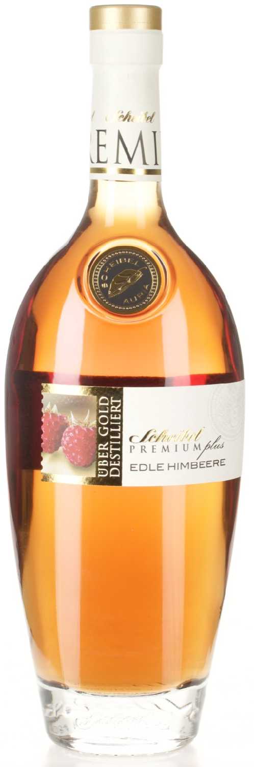 Die Premium Plus (früher Finesse) Linie des Familienbetriebes Scheibel ist der neue Trendsetter unter den Spirituosen. Diese sind auch nicht umsonst die neuen Verkaufsschlager der für Obstbrände bekannten Brennerei Scheibel. Der Scheibel Premium Plus Edle Himbeere ist ein schönes Beispiel aus einer Reihe, welche mit einer überwältigenden Fruchtaromatik überzeugt. Für die Premium Plus Linie werden ganz besondere Verfahren angewandt. Für den Scheibel Premium Plus Edle Himbeere wird zunächst über 22 karätigen Goldplatten ein bereits hocharomatischer und runder Himbeergeist destilliert. Frische Früchte werden in entsprechendem Brand - hier vorwiegend Himbeeren in Himbeergeist - mazeriert, also über einen längeren Zeitraum eingelangt. Der so hergestellte Fruchtauszug bringt die lebendige und fruchtige Aromatik zurück in den Himbeergeist. So entsteht ein völlig neues, frisch-fruchtiges und trotzdem kräftiges Produkt.