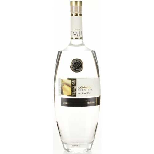 Der Scheibel Premium Williams Christ Birne ist ein Edelbrand aus dem Herzen des Schwarzwaldes. In Kappelrodeck steht die traditionsreiche Schwarzwaldbrennerei Scheibel, welche für seine herausragenden Obstbrände Bekanntheit erlangt hat. Dies liegt nicht nur an den hochwertigen Grundprodukten, welche für die Brände genutzt werden, sondern auch an der Liebe zum Detail und den besonderen Herstellungsverfahren. So werden für diesen Williams Christ Brand ausschließlich vollreife Birnen aus dem Rhônetal verwendet. Diese werden handverlesen und vor dem Einmaischen entkernt. Diese Liebe zum Detail macht sich im Endprodukt deutlich bemerkbar, denn diesem Williams Christ Brand fehlt die sonst übliche bittere Note welche überwiegend von Kernen stammt. Selbstverständlich wird im Hause Scheibel auch nicht normal gebrannt: die Produkte der Premium Reihe werden über 22 Karat Gold zweifach destilliert. Die Destillation über Gold wird in der Schwarzwaldbrennerei klangvoll Scheibel Auria genannt. Diesem besonderen Verfahren wird nachgesagt, äußerst aromatische und weiche Brände hervorzubringen. Der Scheibel Williams Birne wird anschließend für mindestens drei Jahre gelagert, wodurch sich sein Aroma abrunden kann. Das fein-fruchtige Bouquet findet sich mit der gleichen Aromatik im Geschmack wieder. Der Duft vollreifer Williams Christ Birnen steigt einem sofort in die Nase. Gepaart mit dem vollen, kräftigen Körper ist die Birne geschmeidig und voluminös auf der Zunge. Dabei fehlen diesem Brand die häufig als störend empfundenen Bittertöne durch das sorgfältige Entfernen der Kerne. Im Abgang überrascht der Scheibel Williams Birne mit einem Hauch rotem Pfeffer, welcher die Süße der Birnen würzig abrundet. Ein wirklich überraschend harmonischer und aromatischer Edelbrand. Wird ganz klassisch pur als Digestif serviert.
