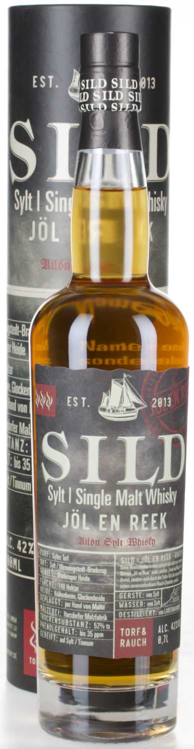 Feuer und Rauch, im nordfriesischen Dialekt "Jöl en Reek" übersetzt, sind die aromagebenden Komponenten dieses außergewöhnlichen Drams. Alles beginnt mit Sylter Gerste. Diese wächst im Ortsteil Morsum unweit der herrlichen Heidelandschaft. Auch das Quellwasser für den Whisky born auf Sylt und made in Bayern stammt von der Nordseeinsel. Als dritte Zutat im Bunde mischt Sylter Torf den späteren Whisky auf.