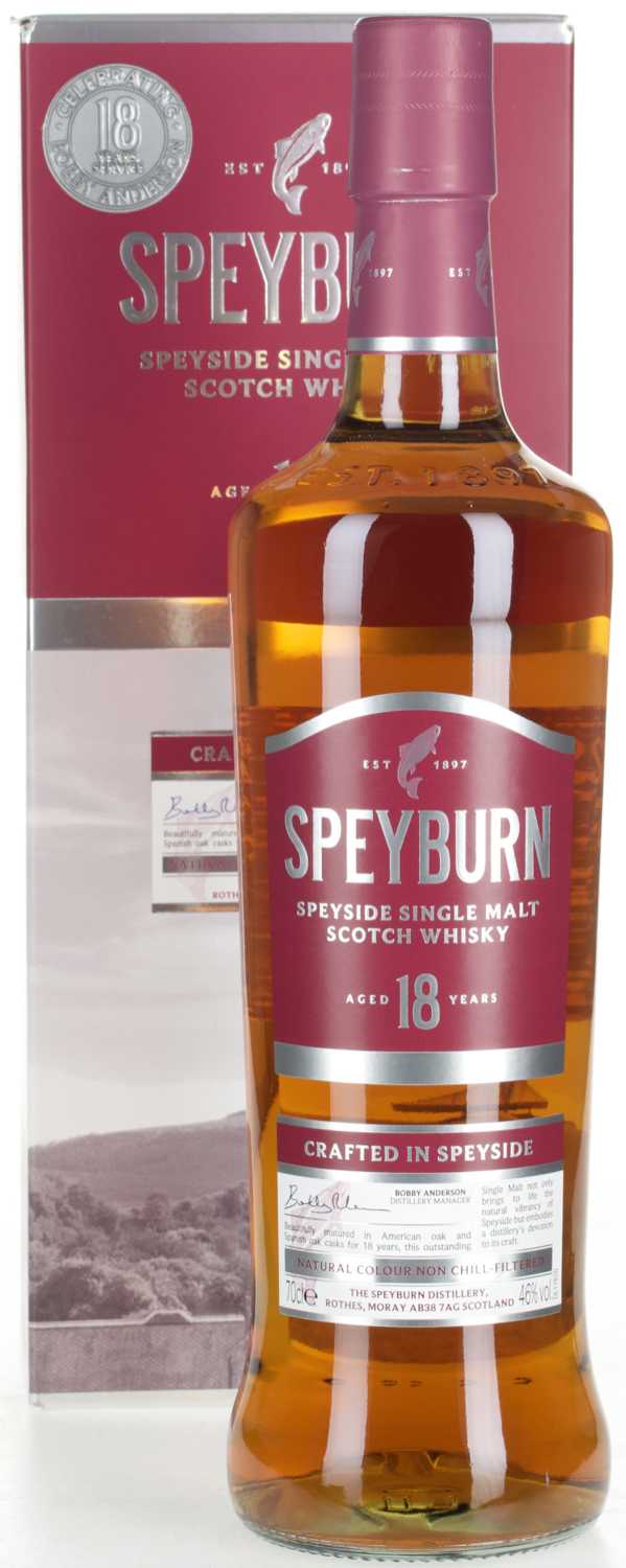 Die Brennerei Speyburn wurde im Jahre 1897 von John Hopkins gegründet. Die Nähe der Destillerie zum Fluss Spey und zur Wasserquelle Grant Burn ist dabei für den Namen Speyburn verantwortlich. Im Rahmen umfangreicher Neuerungen konnte das Traditionsunternehmen durch den Einsatz modernisierter Anlagen die Produktionskapazität erhöhen sowie gleichzeitig die Energieeffizienz verbessern. Die Region Speyside ist dabei für die Herstellung erstklassiger Whiskys prädestiniert. Die ausgezeichnete Lage spiegelt sich selbstverständlich im unverwechselbaren Geschmack wider. Der außergewöhnliche Speyburn 18 Years Single Malt Scotch Whisky reift für einen Zeitraum von 18 Jahren in amerikanischen und spanischen Eichenfässern nach. Somit wird ermöglicht, dass der Whisky seine einzigartige Farbe und Qualität entwickeln kann.