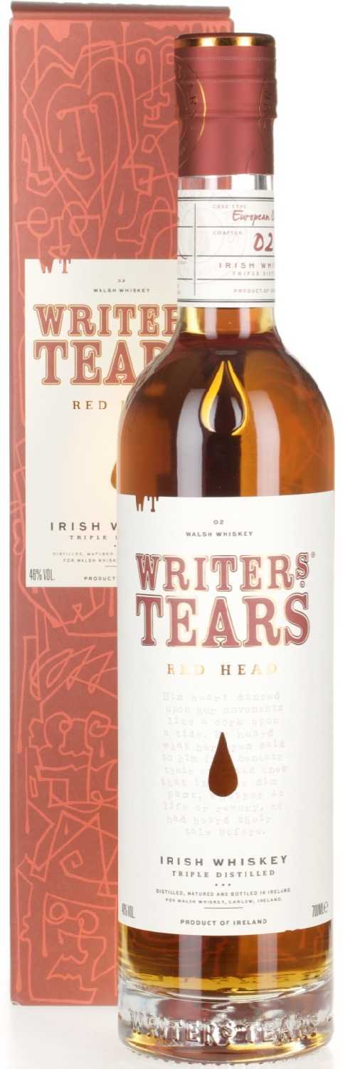Writer's Tears Red Head ist der erste und bisher einzige Single Malt Whiskey der Marke Writer's Tears. Deren Name ist eine Hommage an die irischen Schriftsteller wie James Joyce oder Oscar Wilde, denen nicht selten ein guter Whiskey über eine tränenreiche Schreibblockade hinweghalf. Diese nach Angaben des Unternehmens limitierte Sonderedition zeichnet sich nun dadurch aus, dass der Whiskey vor seiner Abfüllung in ehemaligen Oloroso Sherry-Fässern heranreifte. So erhält er dann auch seine charakteristische und namensgebende rote Farbe, die im Glas zu bestaunen ist. Auf Farbstoffe und Kältefiltrierung wurde bei der Herstellung komplett verzichtet. Wie bereits der Blended Pot Still der Marke ist auch dieser Single Malt ohne Altersangabe.