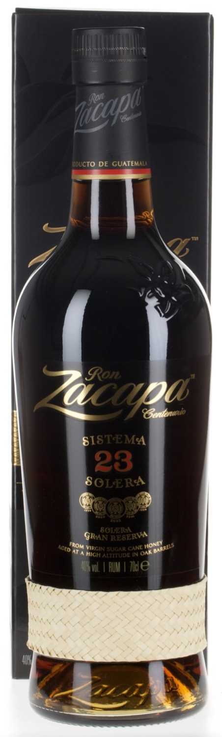 Ron Zacapa Centenario Solera Reserva Sistema Solera 23 ist ein hochwertiger Rum aus Guatemala. Es handelt sich dabei um ein Blend, das aus sechs bis 23 Jahre alten Rums hergestellt wurde. Diese reifen im Solera-Verfahren heran, eine Methode der Sherry- oder Brandy-Herstellung. Dabei stapelt man die mit Rum gefüllten Fässer so übereinander, dass die ältesten Destillate unten lagern und die nächstjüngeren immer eine Stufe darüber. Werden diese miteinander vermählt, leert man die unteren Fässer nicht vollständig, sondern füllt diese zum Teil mit Rum aus der nächsthöheren Stufe auf. Auf diese Weise kommen die Destillate verschiedenen Alters schon vor der Abfüllung miteinander in Berührung.