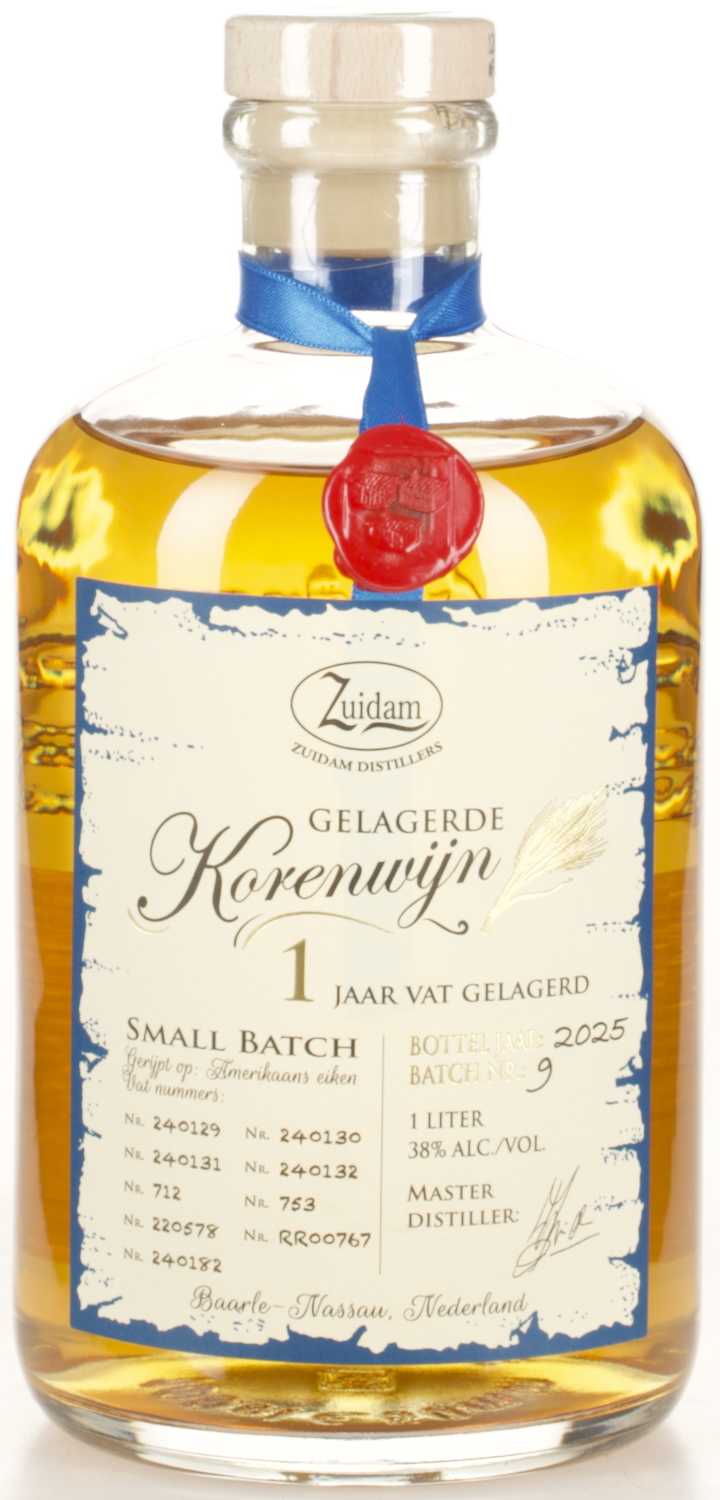 Zuidam gelagerde Korenwijn ist eine niederländische Spezialität. Beim Korenwijn handelt es sich um eine hochwertige Spielart des Genevers, die mit einem besonders hohen Anteil Moutwijn hergestellt wird. Hier handelt es sich um ein Destillat aus Roggen, Mais und gemälzter Gerste.